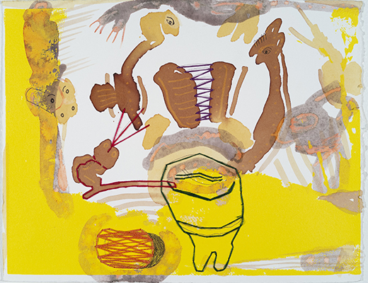 Mixed Media with Serigraph, Natural Dye, Ballpoint Pen and Embroidery