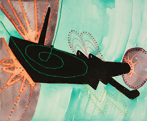 Relief Printing, Fabric Dye Painting, Acrylic Fabric Liner and Embroidery