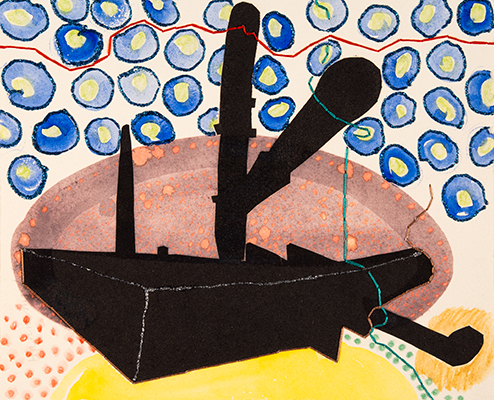 Relief Printing, Fabric Dye Painting, Acrylic Fabric Liner and Embroidery