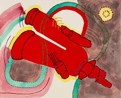 Relief Printing, Fabric Dye Painting, Acrylic Fabric Liner and Embroidery