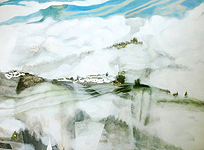 long-running Water series. During the autumn of 2013, Yun and a few of her former classmates from the University of Anhui – along with their professor – reunited and returned to Huizhou, China, to paint the same landscape as they did 20 years ago when they were students in the BA Hons program. Upon returning to Vancouver, Yun produced a series of paintings featured in this exhibition that became mnemonic of both her university experience as well as her return trip to Huizhou. Just as water has been an important subject matter in her oeuvre, the cloud motif is imbued with much personal meaning. To Yun, clouds are a metaphoric representation of ideas, emotions and sensory experience that create an ephemeral atmosphere akin to the fluid and mercurial quality of a memory or a dream. The resulting work in “Cloud Dreams” is serene, nostalgic, evocative and introspective. Currently working and residing in Vancouver, Canada, June Yun was born in China and attended Anhui Normal University and Central Academy of Fine Arts in Beijing majoring in painting before completing a Master of Fine Arts degree from the University of Newcastle upon Tyne in the United Kingdom in 2000. Since then, she has taught in universities and art institutions in China and Canada and has exhibited her work internationally in China, Europe and North America.